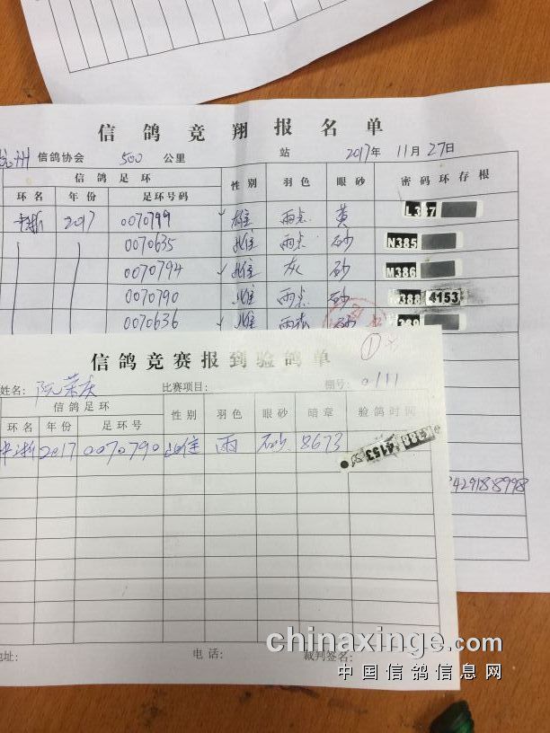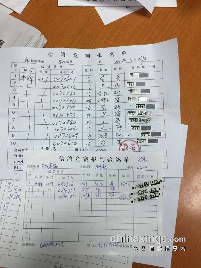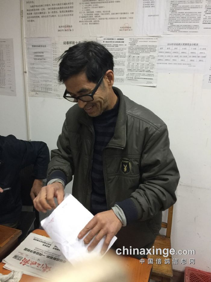 2017年半岁鸽集鸽点院里赛鸽比赛结束后由监督会员林志明送回封包,并邀请监督会员孙国欣、汪志强,3人一起开启封包验证密码环,会员阮荣庆、汤建强会员赛鸽成绩真实有效。