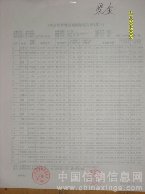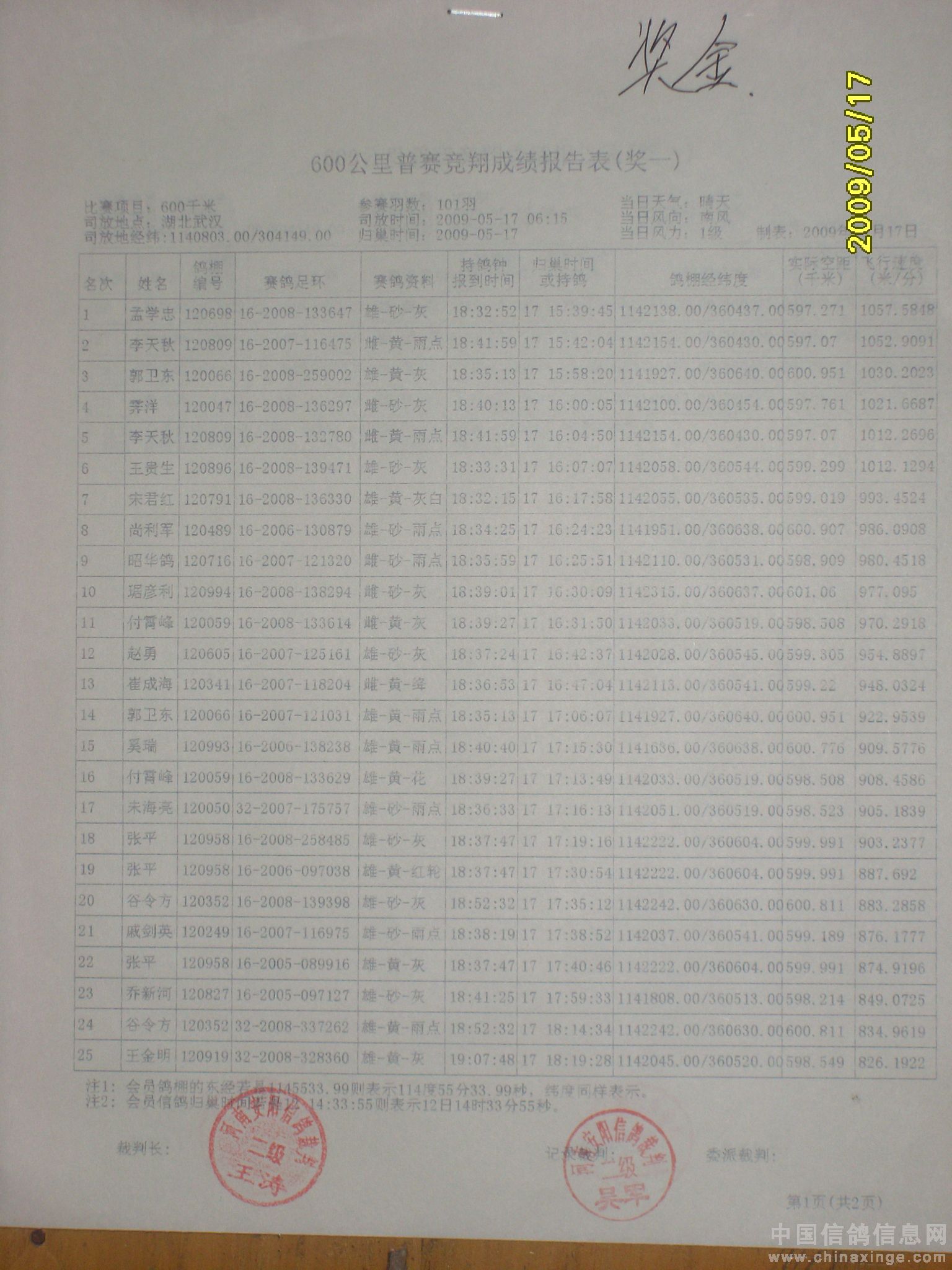 500公里大悟站前十名验鸽(汽车大奖赛冠军)(7-8)