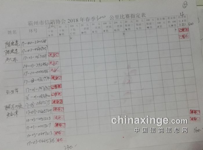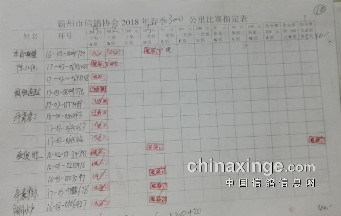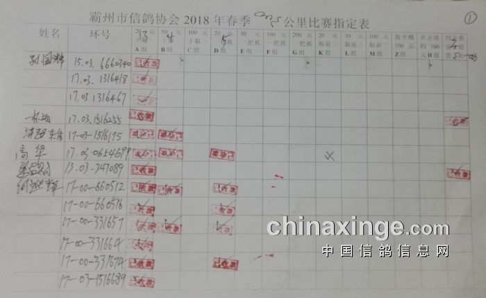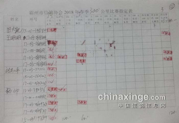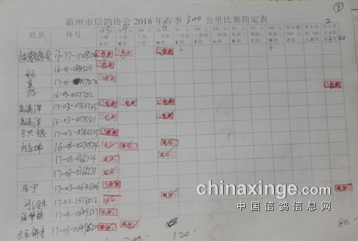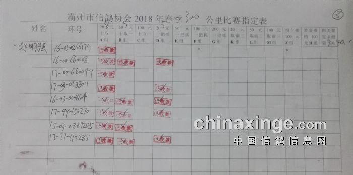 霸州市信鸽协会2024年春季国家赛500公里级比赛成绩