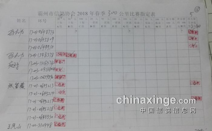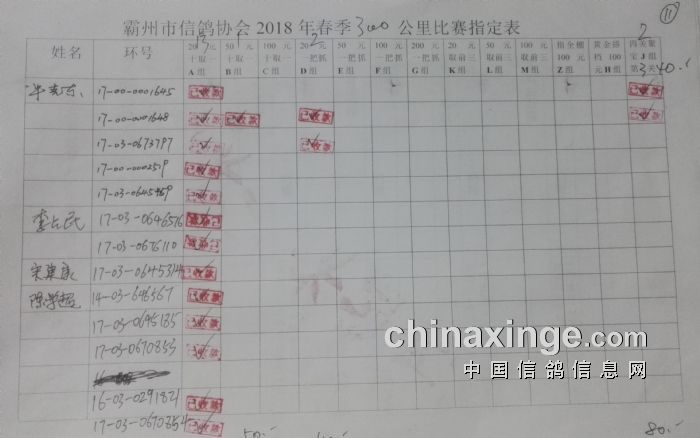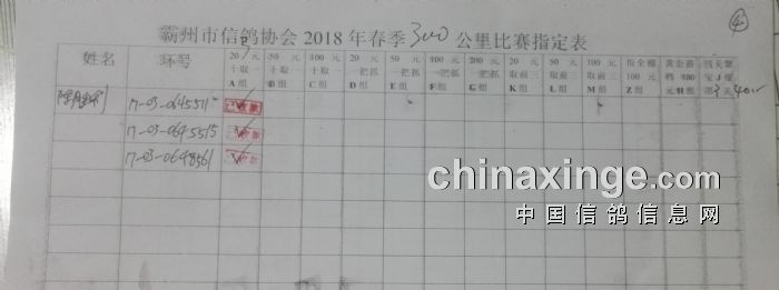 霸州市信鸽协会2025年春季500公里级国家赛成绩