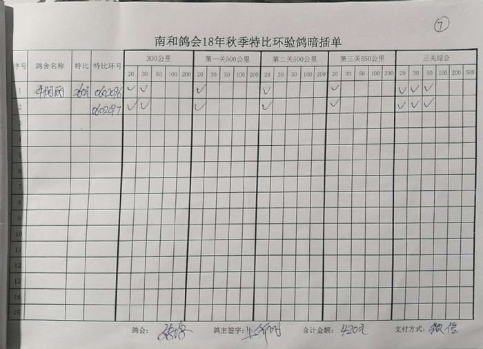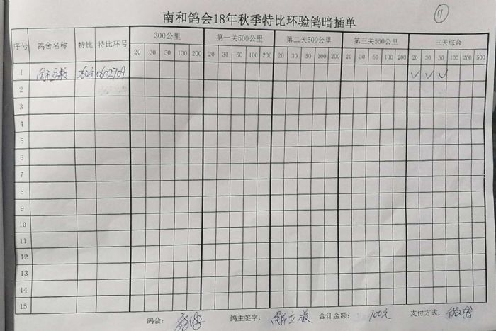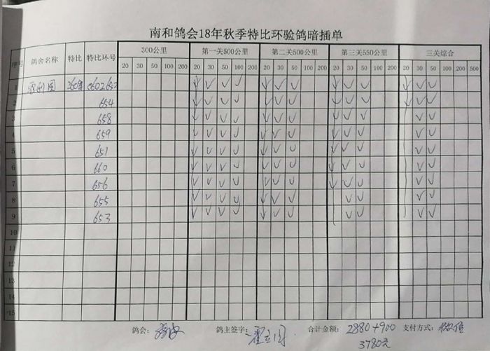南和鸽会18年秋季特比环 验鸽暗插清单3