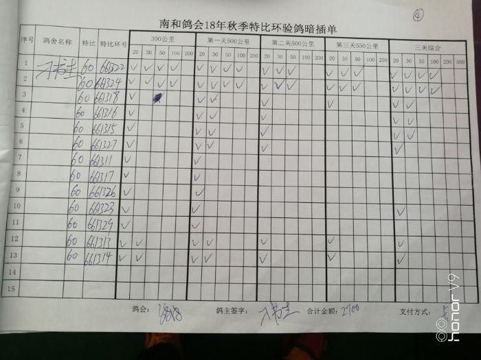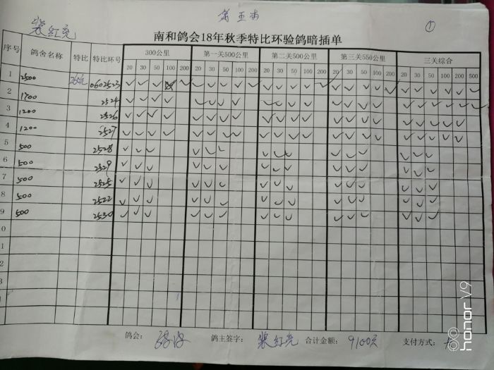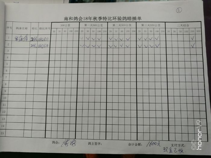 南和鸽会18年秋季特比环 验鸽暗插清单5