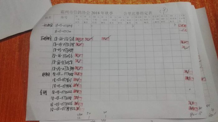 霸州市信鸽协会2025年春季500公里级国家赛成绩