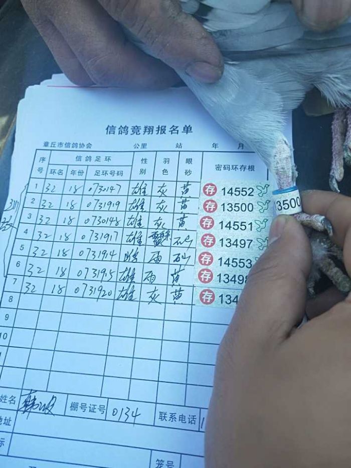 章丘区信鸽协会2023秋特比环验鸽清单