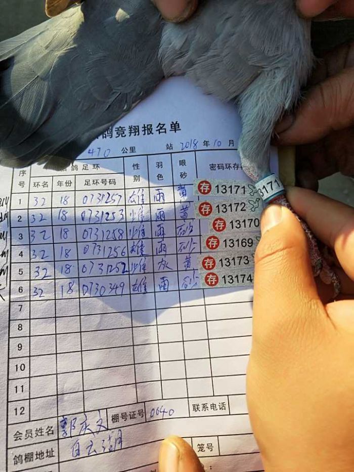 章丘区信鸽协会2018秋特比环一关前十验鸽图片