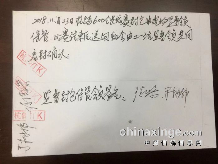 2018年秋长城杯赛集鸽院内赛鸽、裁判赛鸽由监督会员监督进笼、封包