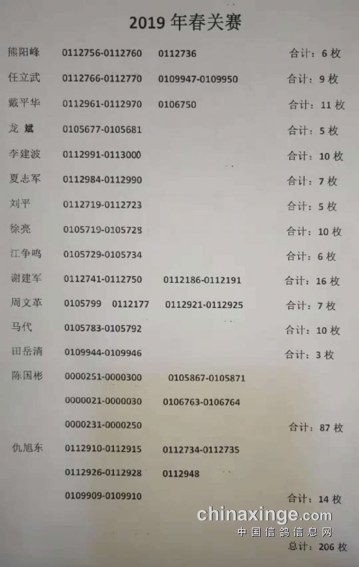 2025年湘阴信鸽协会春赛三关鸽王排名情况汇总