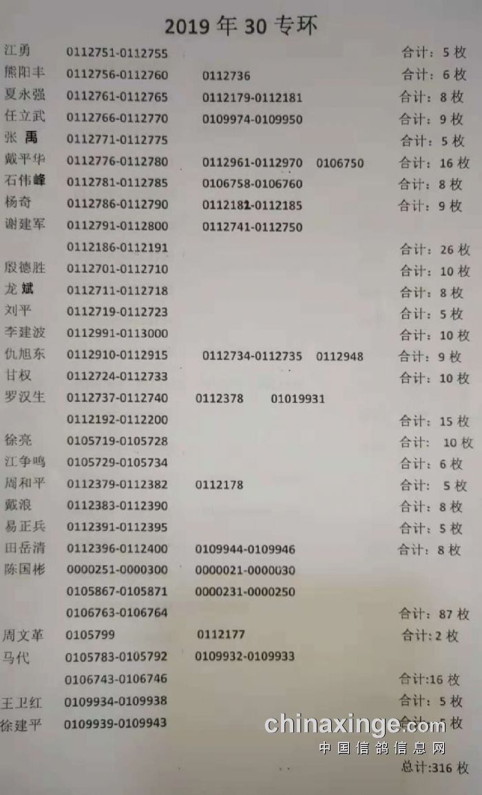 2025年湘阴信鸽协会春赛500公里30专环排名情况汇总