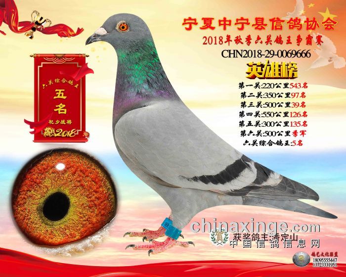 2018年秋季宁夏中宁县信鸽协会第六关500公里前三名获奖鸽照