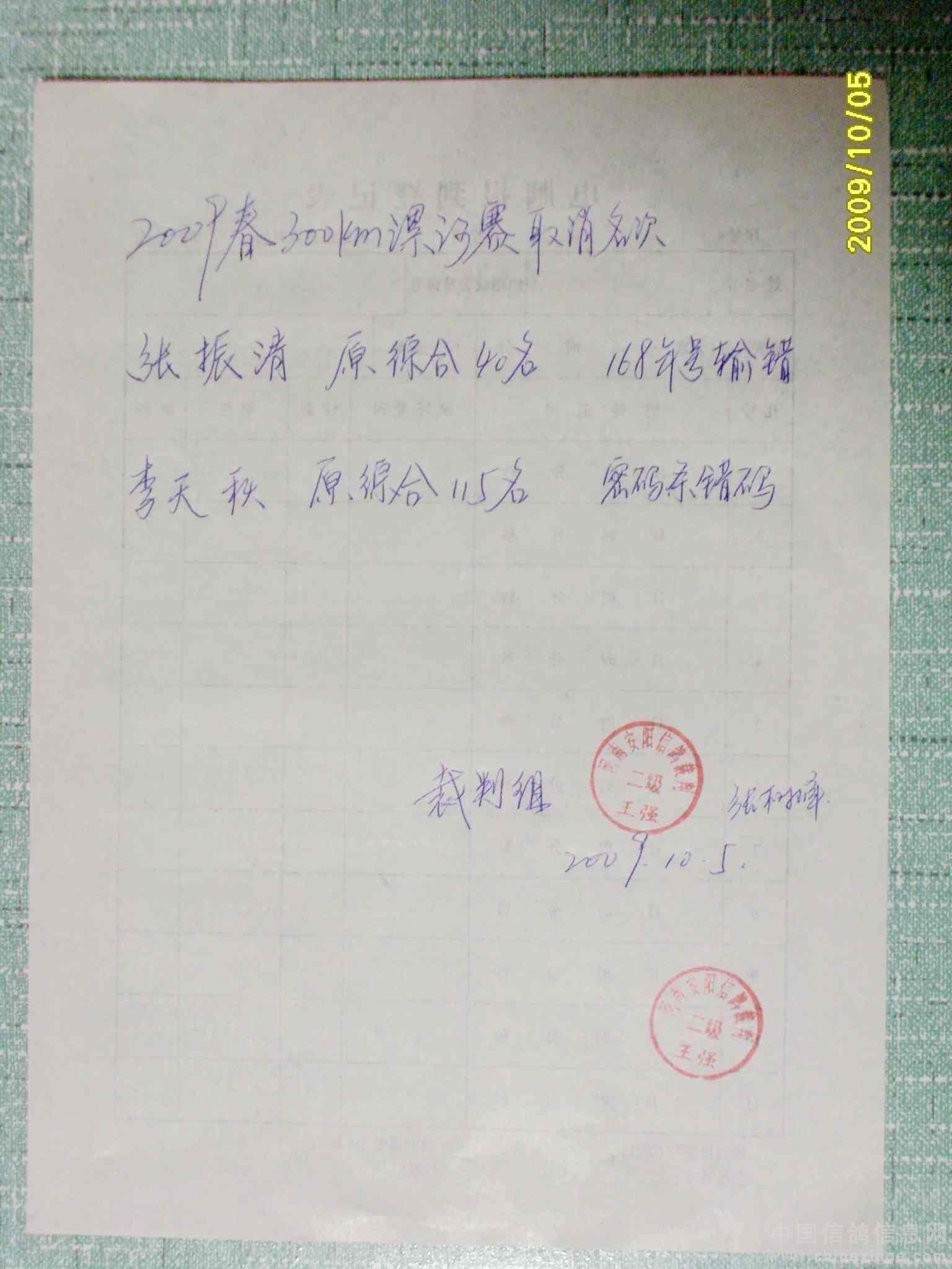 500公里大悟站前十名验鸽(汽车大奖赛冠军)(7-8)