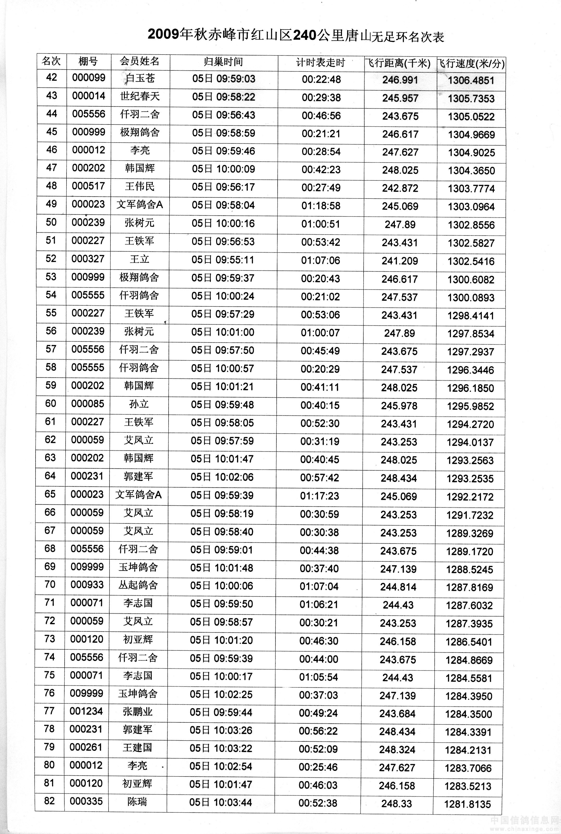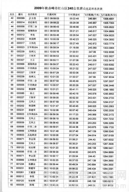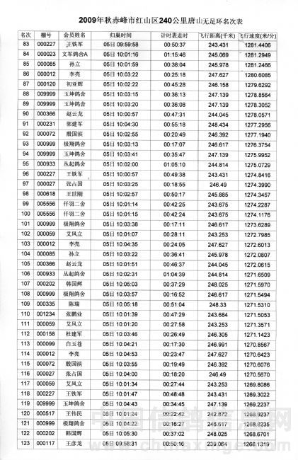 赤峰市红山区2009年10月5日唐山站240公里成绩