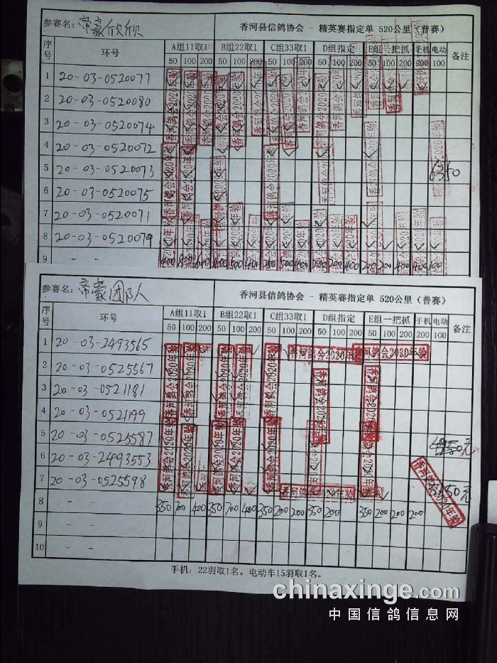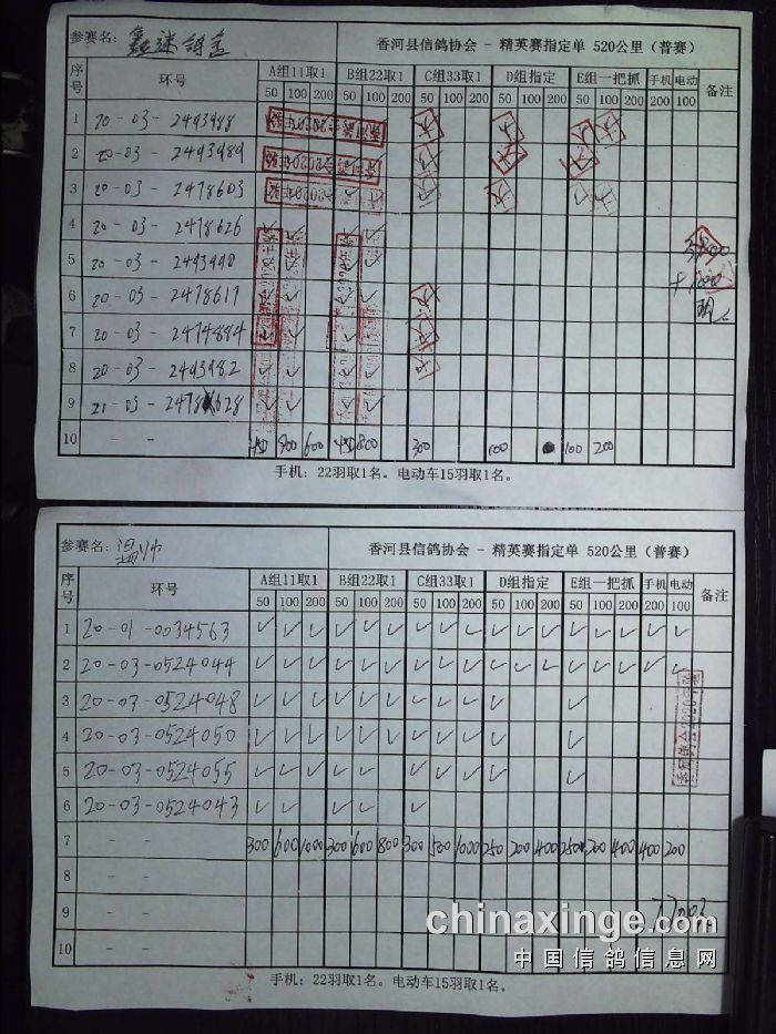 50组:共计246羽,取12名;1-11名各1000,第12名180。