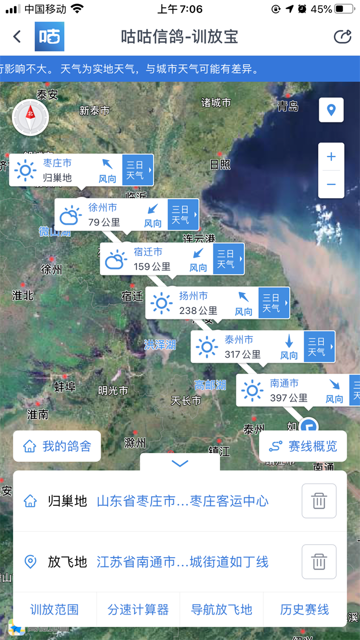 山东省枣庄市信鸽协会400公里南通站于10月24日06:50开笼,天气 晴,赛鸽走势良好。预祝广大会员取得优异成绩!