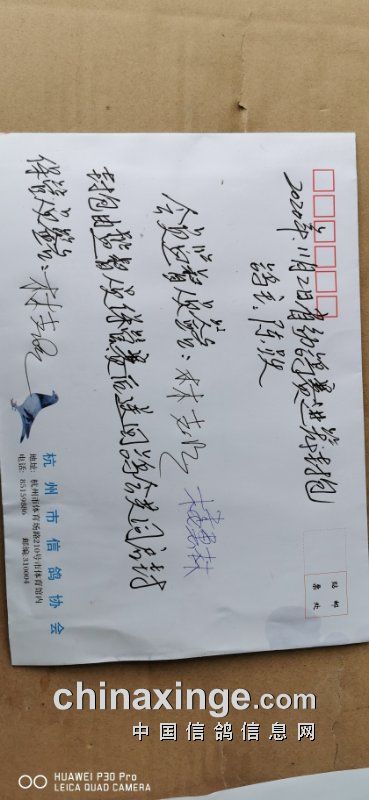 2020年秋省幼鸽大奖赛会员陈跃赛鸽由监督会员监督验环封包