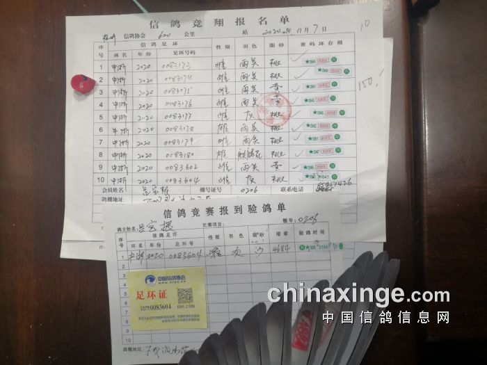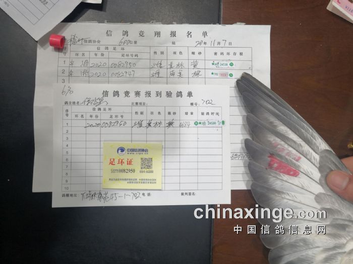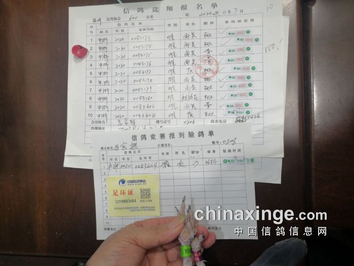 2020年秋长城赛6-8名验鸽照片
