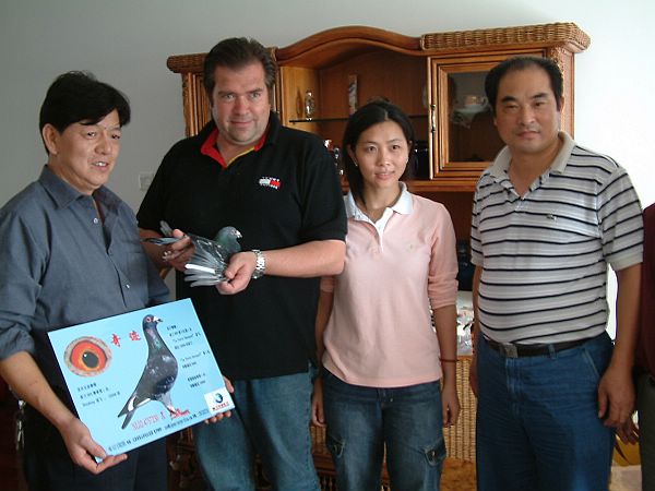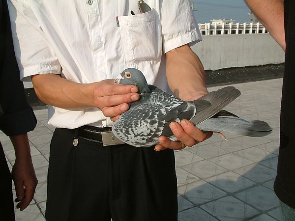 那天,适逢协会进行了第二站50公里训放,由于清晨遇雾,原本一早放出的鸽子,无奈只得推迟到8点后放出,因中荷鸽舍是第一次参加鸽协集体训飞,罗伯特鸽友十分兴奋,可左等右等不见鸽子,心里非常纳闷,后来鸽子回来得很好,放63羽,上午就回来了61羽,真是一场虚惊!待搞清原委后,方知是大雾搞的鬼!为此,罗伯特通过唐雪梅小姐翻译,向我们介绍了荷兰鸽赛管理情况,他说协会可以到电讯部门去申请办理手机短消息群发功能,届时全部鸽友就可以通过短消息,知道鸽子放飞的时间,有利鸽友耐心等鸽,小小的一个建设性意见,正是起到了画龙点睛之作用。