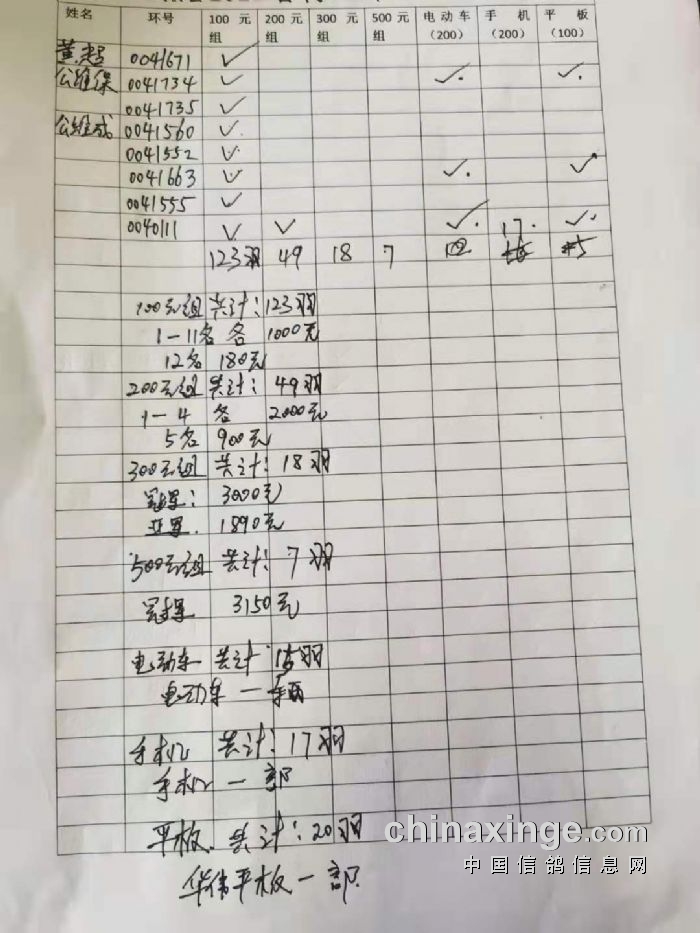 章丘区信鸽协会2023秋特比环售环清单