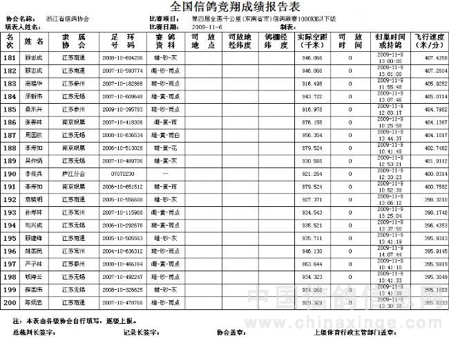浙江省“鸿源杯”二届鸽王赛400KM级得分综合排名