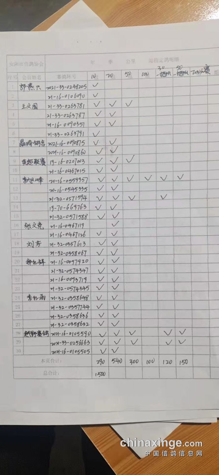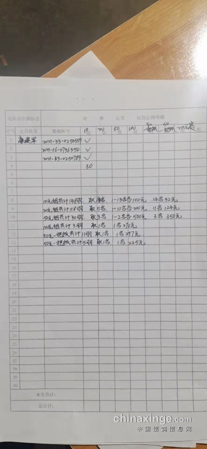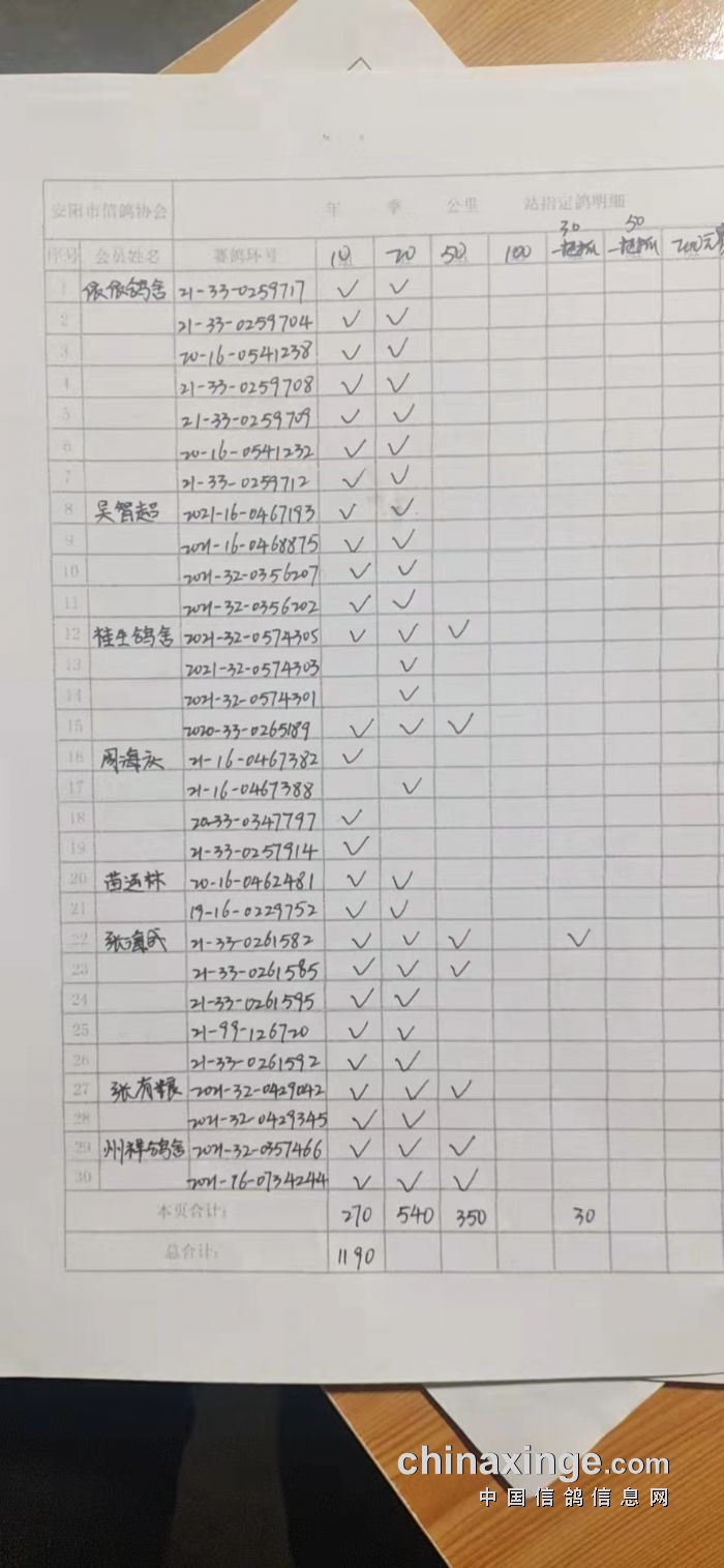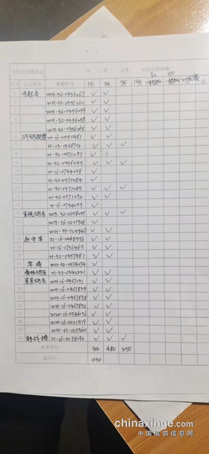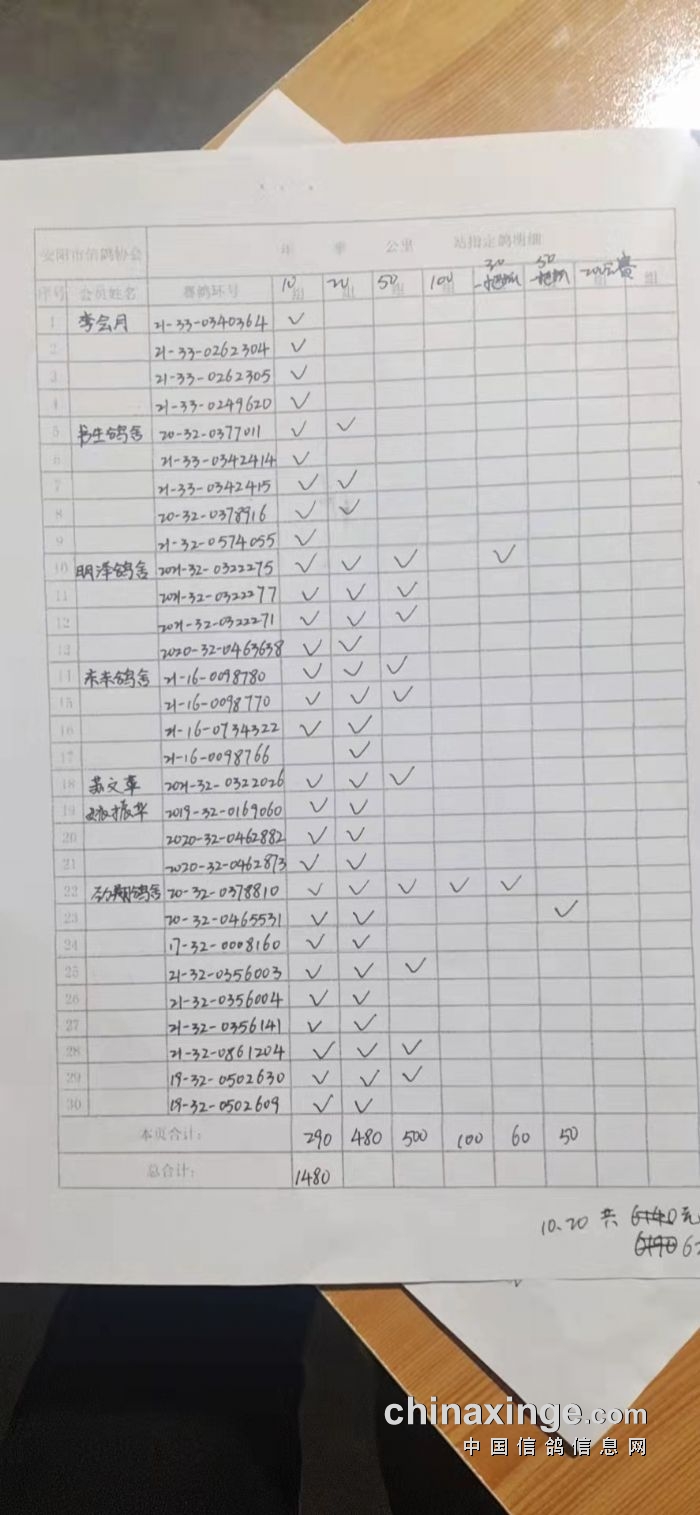 2021秋安阳市信鸽协会500公里大悟站成绩明细(临时)1-100