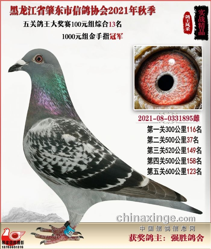 黑龙江省肇东市信鸽协会2021年秋季五关综合1000元组金手指获奖照片(300+500+520+500+600)km