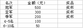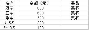 秋季大奖赛奖励办法:(以100枚暂定奖金,如有增加全部逐名递增)