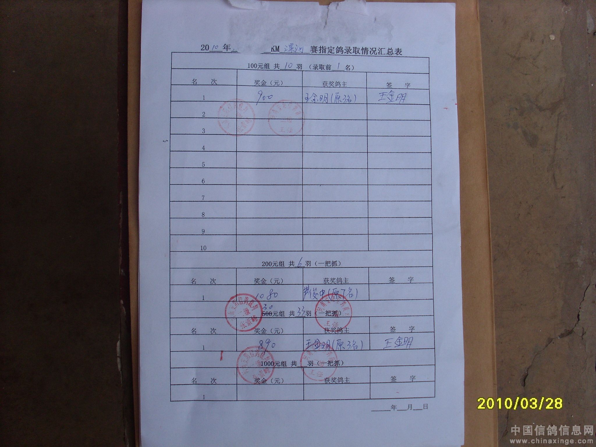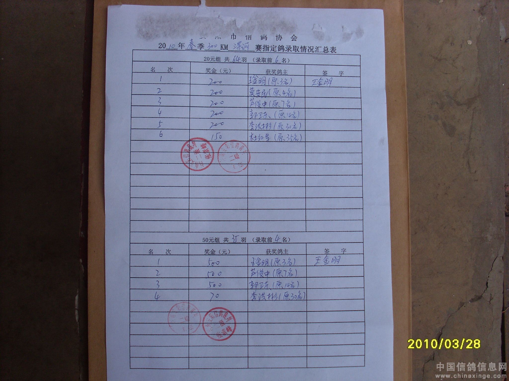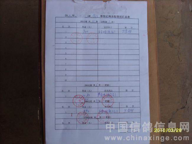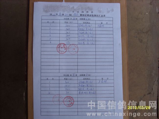 500公里大悟站前十名验鸽(3-4)