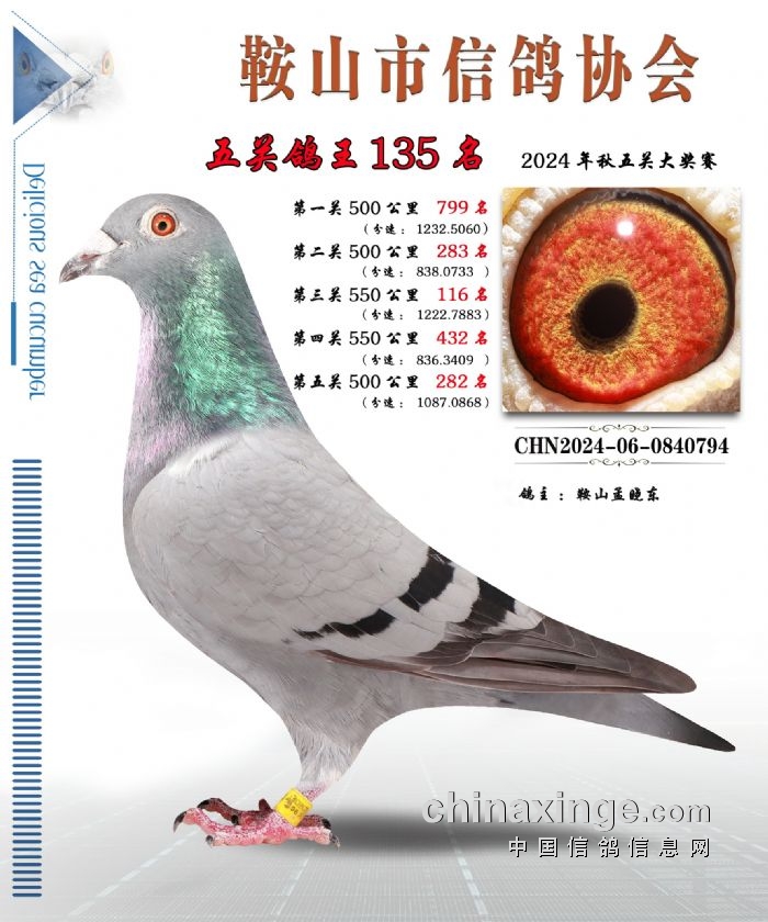 2024年秋季五关综合鸽王前131-140名拍卖鸽图片