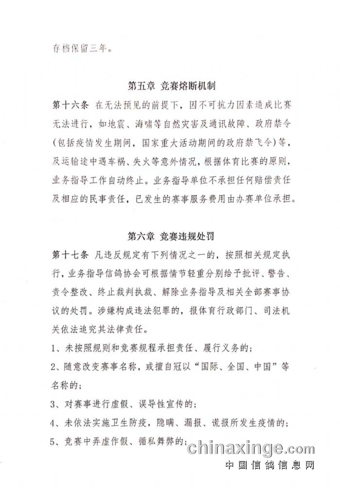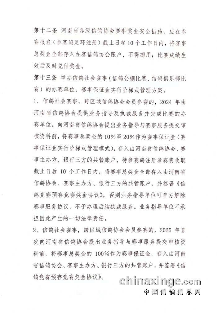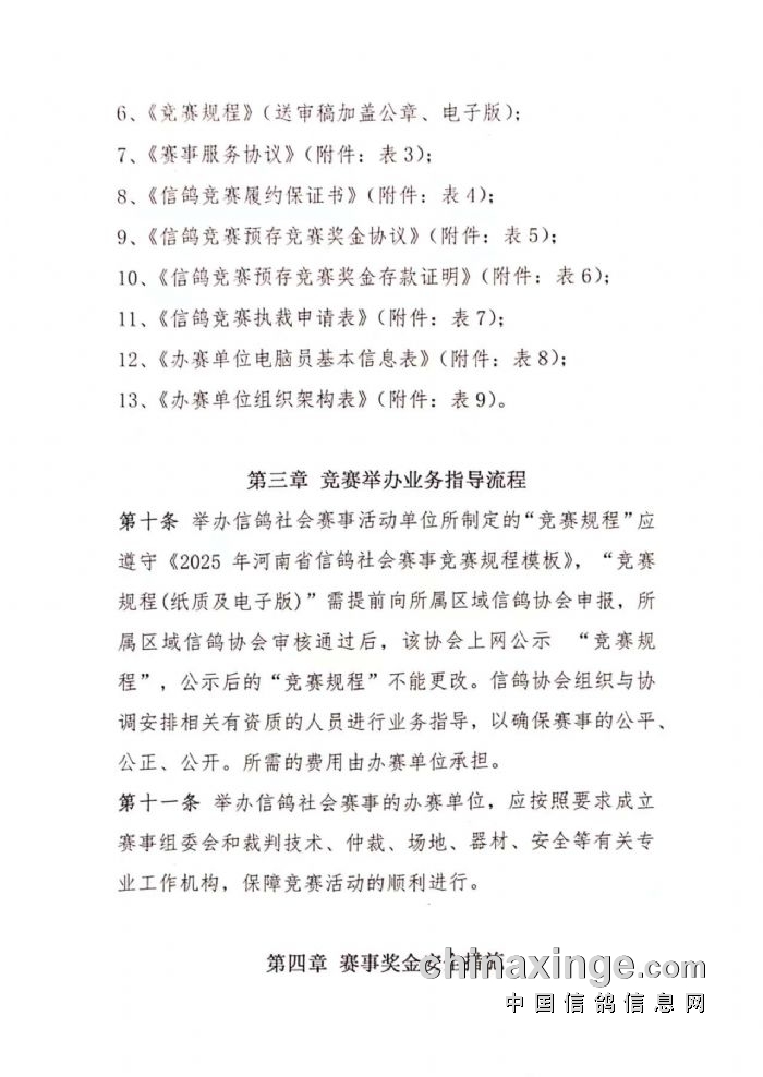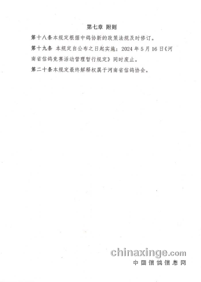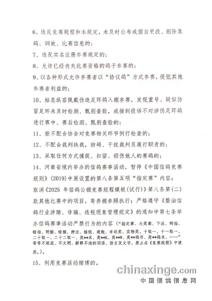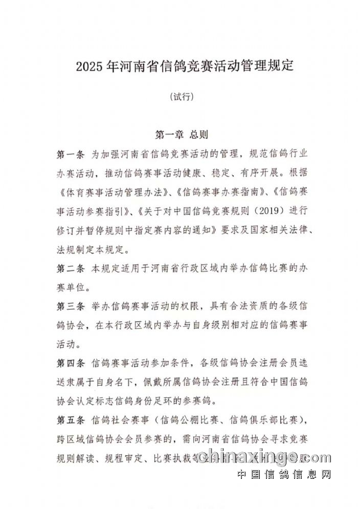 关于印发《2025年河南省信鸽社会赛事规程模板》的通知(下)