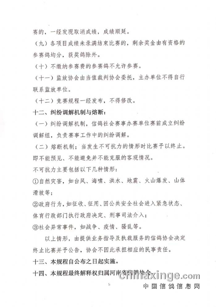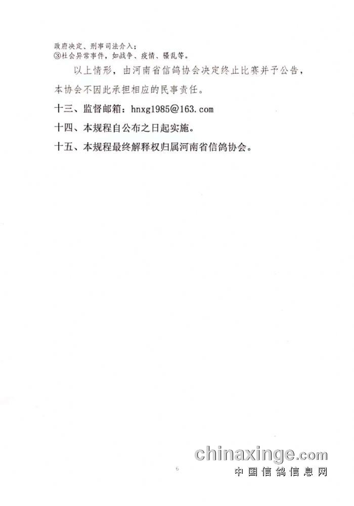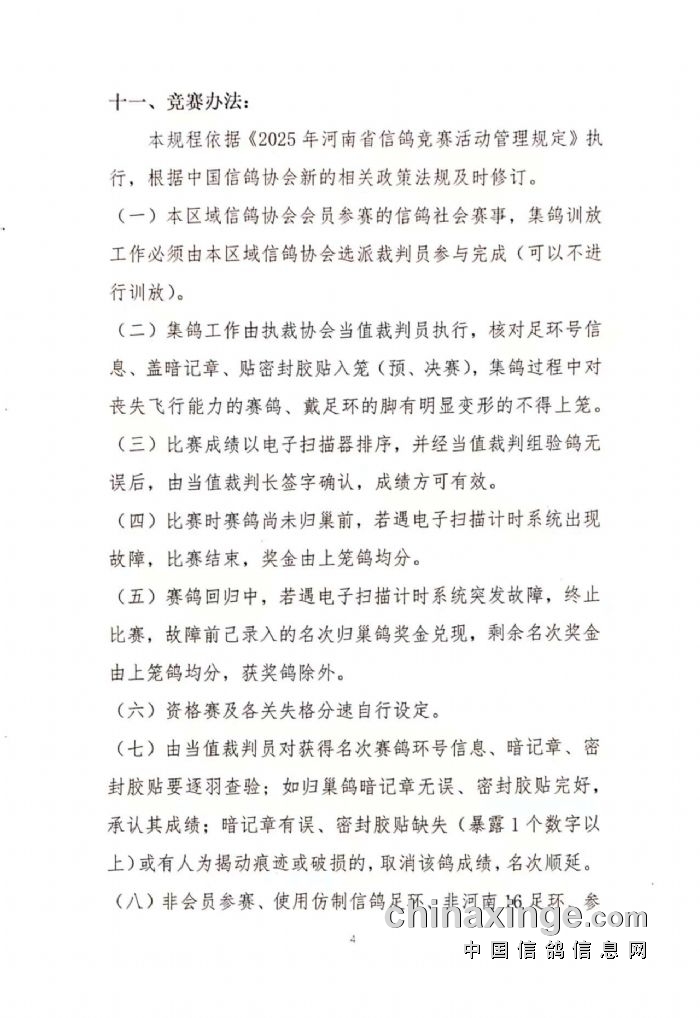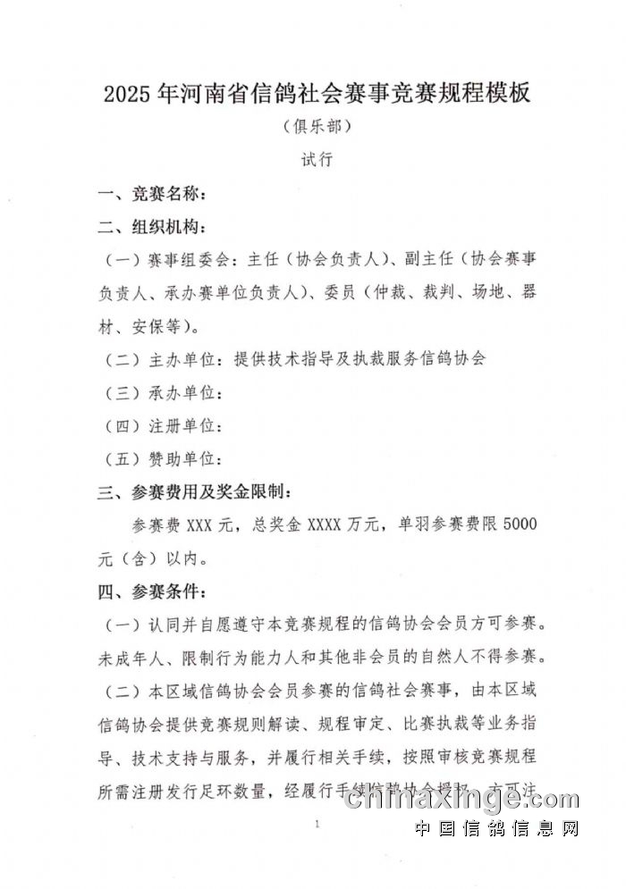 关于印发《2025年河南省信鸽社会赛事规程模板》的通知(下)