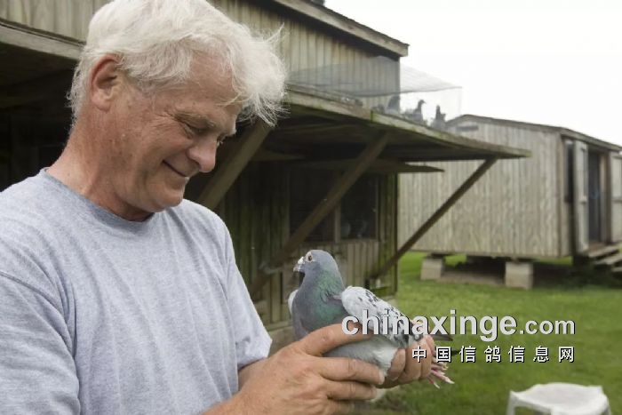 结实有力的后腰,一定要和尾羽生长的根部结合紧密,当鸽体握于手心时,后腰的后半部分和尾羽的前部分,几乎处于整个手掌之中,能感觉到后腰有力,尾羽不散开为佳。12根尾羽一定要粗壮,有一定的油脂,赛鸽的尾羽一定不要残缺,否则比赛中是要吃亏的。相比一字尾来说,我更喜欢平尾,因为平尾不宽不窄比较漂亮,与大体型的鸽体更协调,一字尾与大体型的鸽子相配不伦不类,很不协调,一字尾就像鸽子屁股后面插了根棍子,我不喜欢这样的。