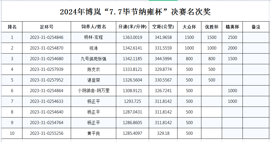 2024年博岚“7.7毕节纳雍杯”决赛数据