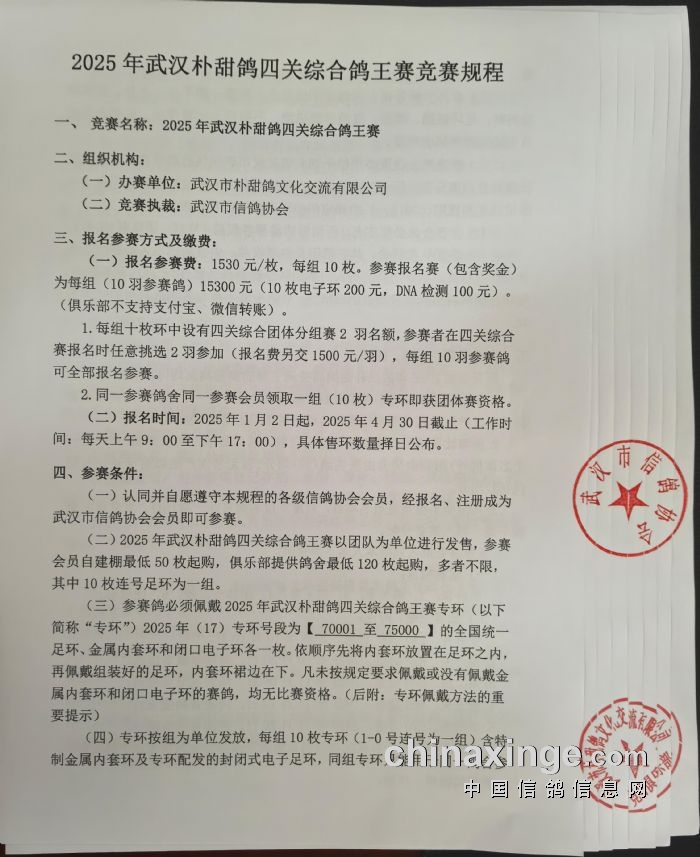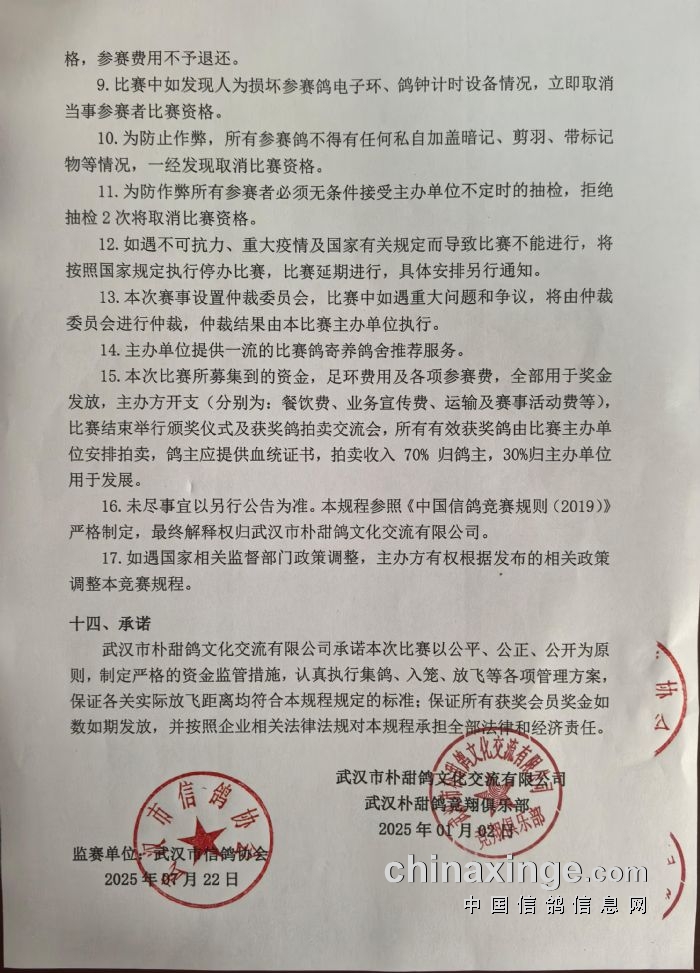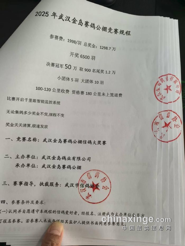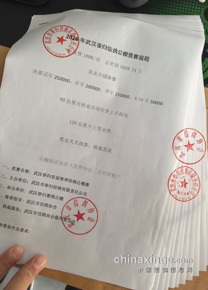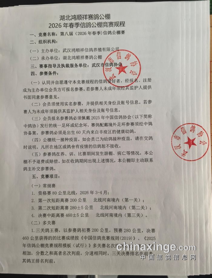 武汉市信鸽协会团体会员单位竞赛规程审核工作已完成