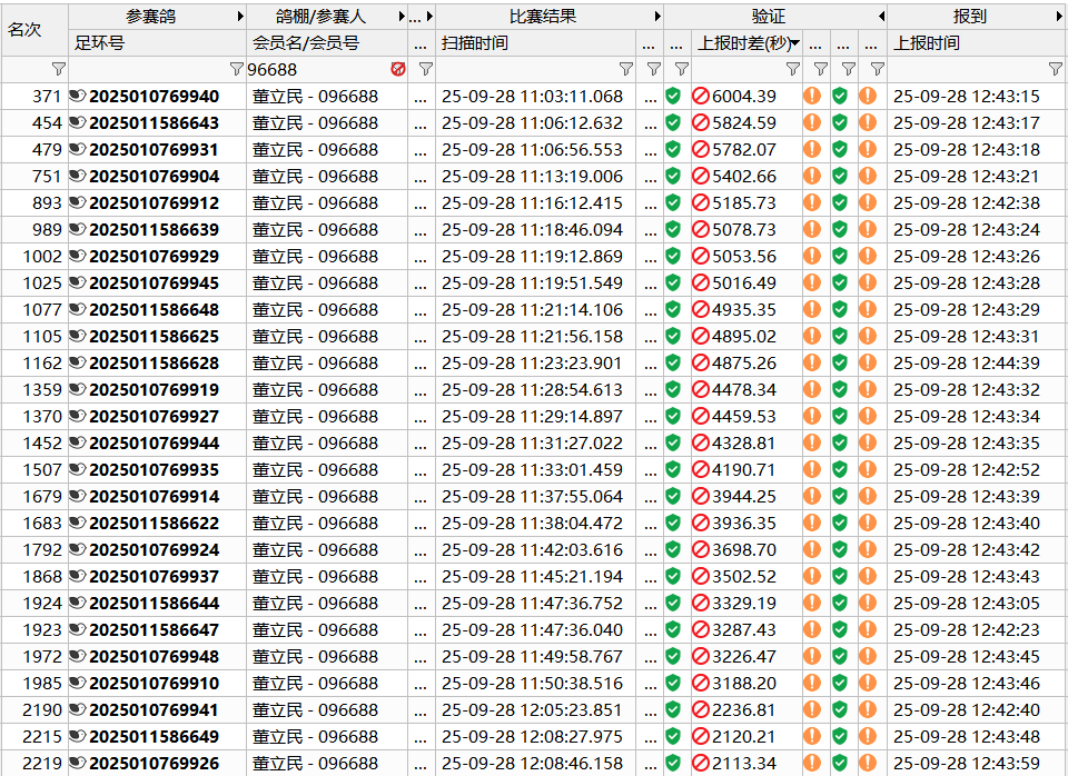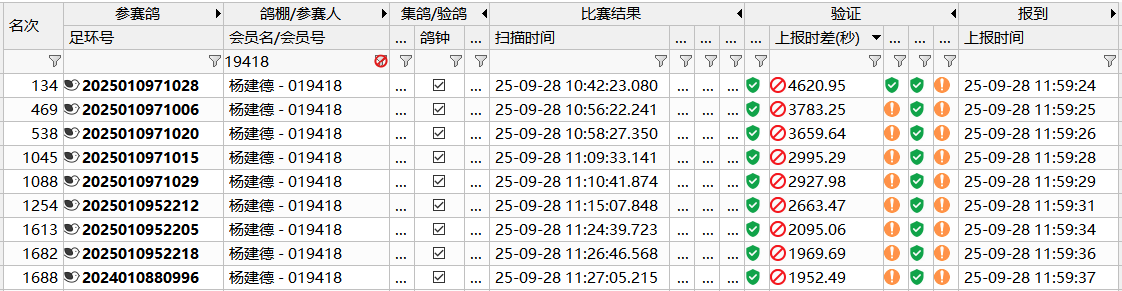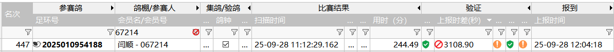 比赛中因上传超时,以下参赛鸽