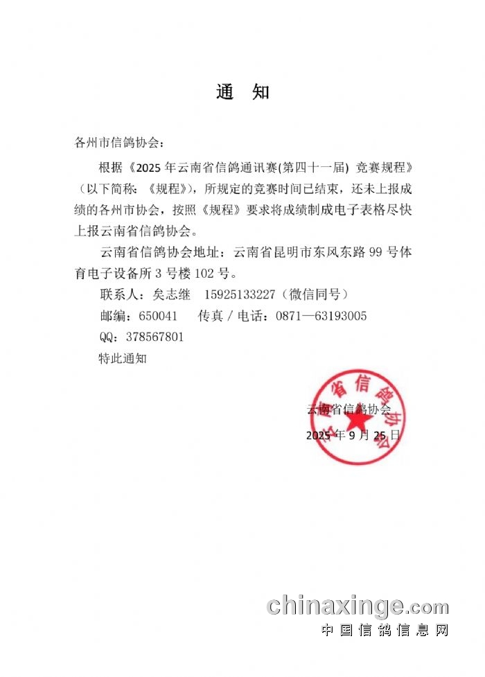 云南省信鸽协会关于《2025年第二十五届信鸽国家赛(云南西双版纳、保山龙陵赛区)竞赛规程》的通知