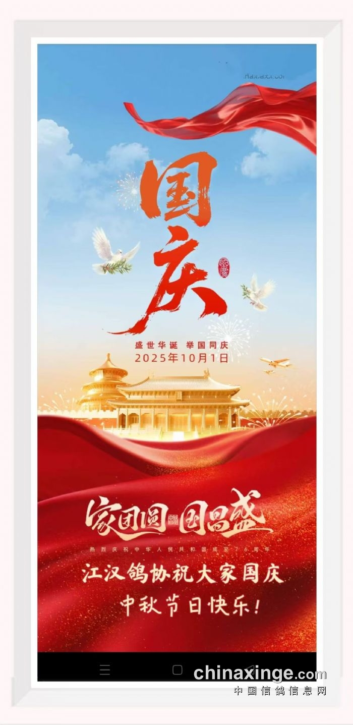 江汉鸽协祝大家国庆、中秋节日快乐!