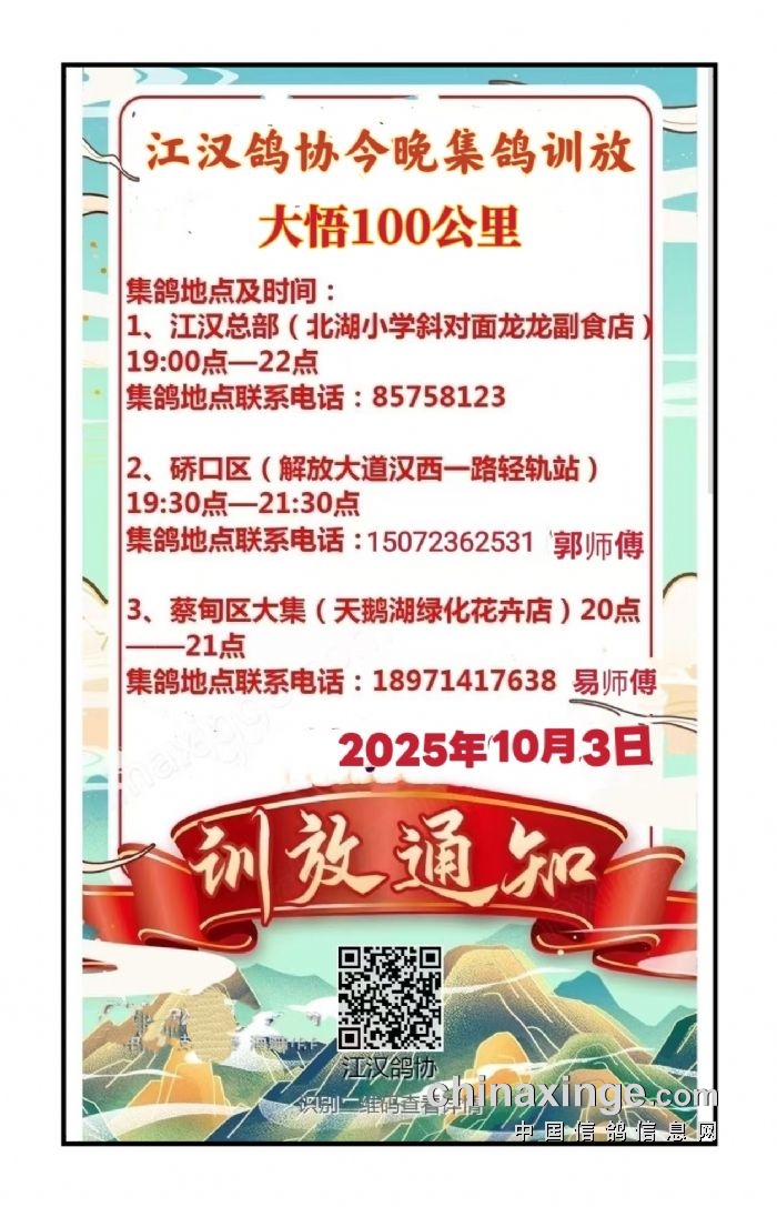 江汉鸽协100公里训放通知