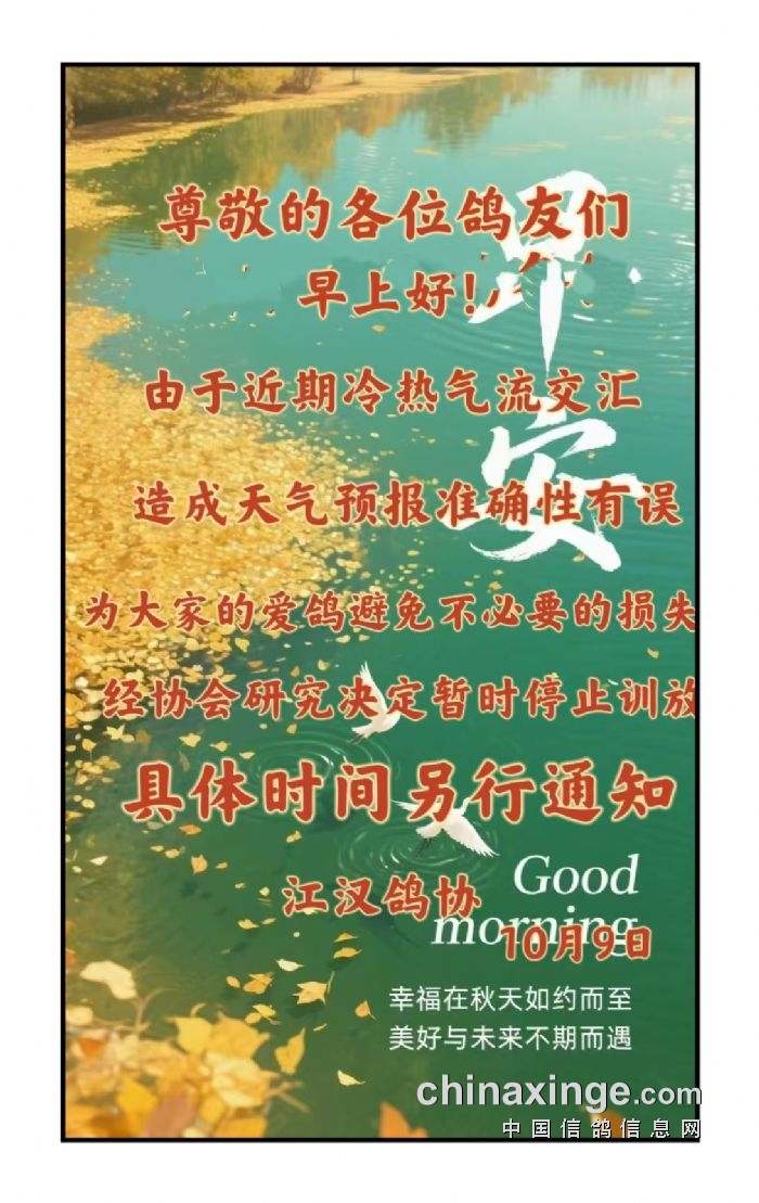 江汉鸽协祝大家国庆、中秋节日快乐!