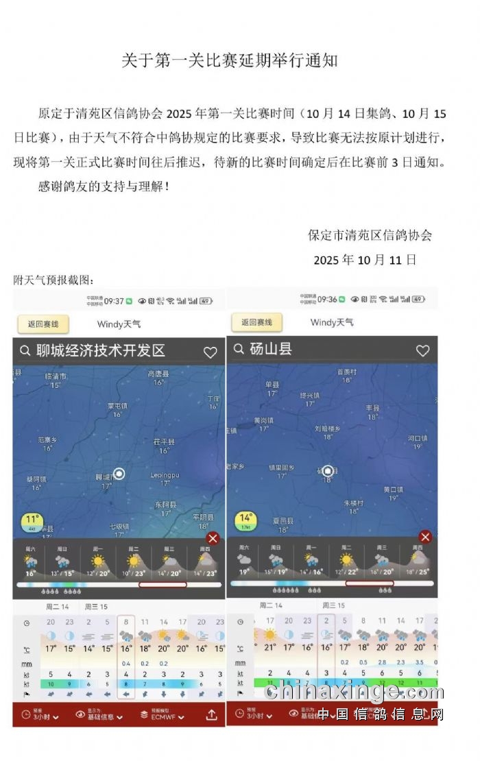 2025年清苑区信鸽协会秋季第一关比赛赛前通知