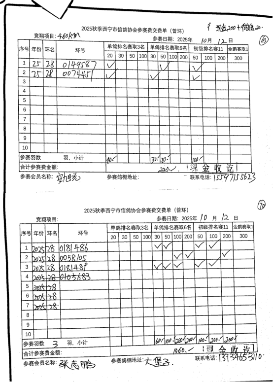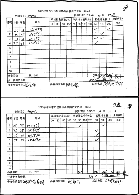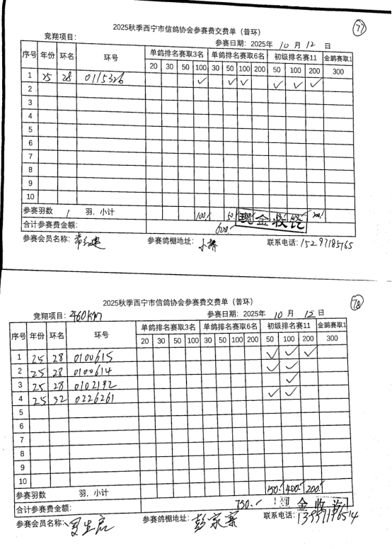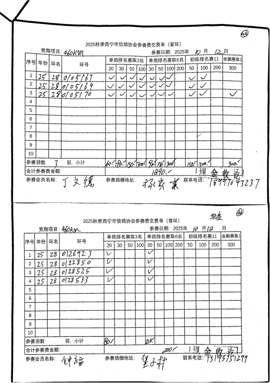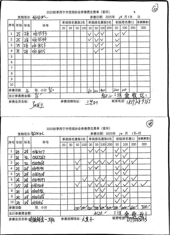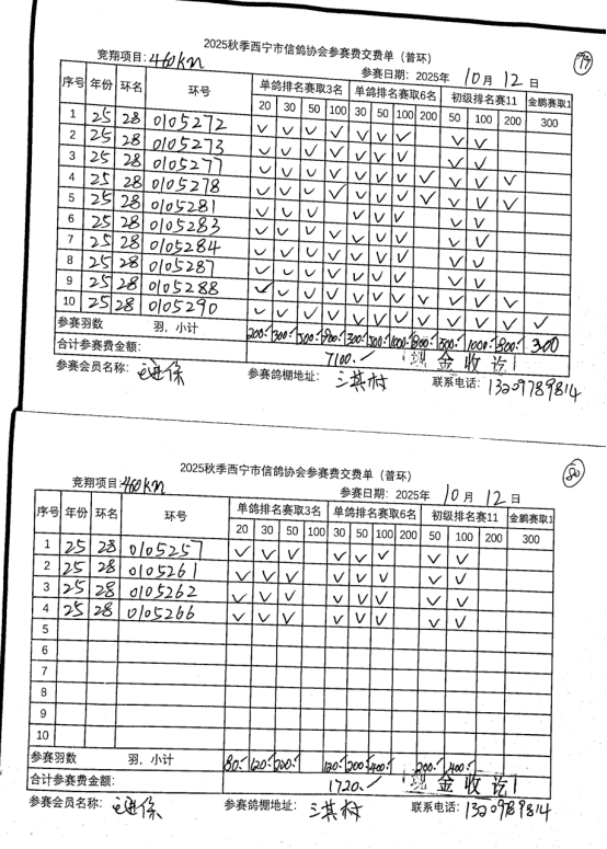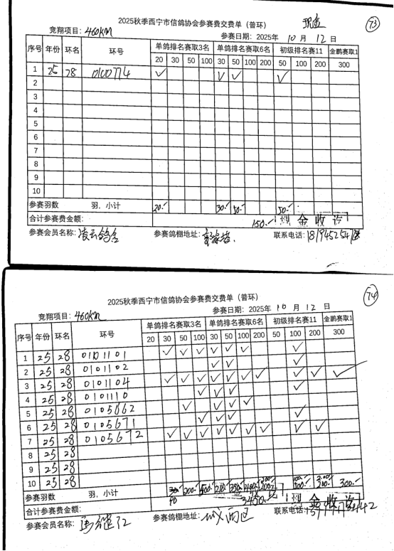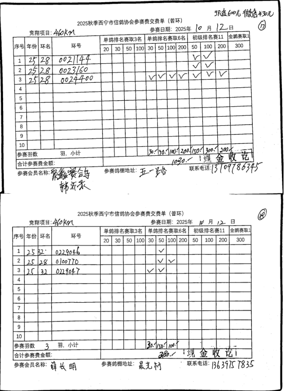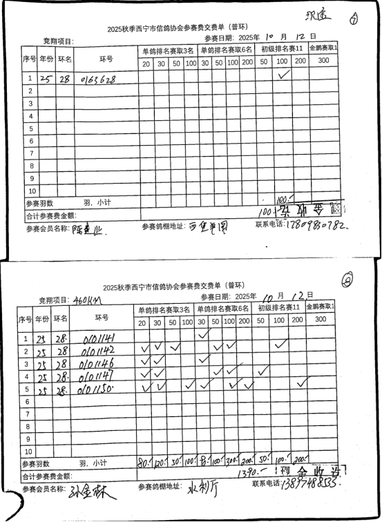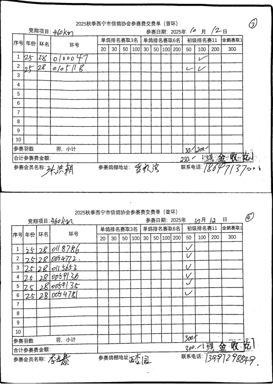 西宁市信鸽协会25年秋季安固滩站速度赛团体