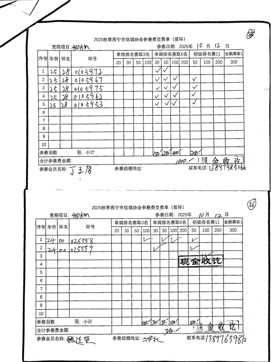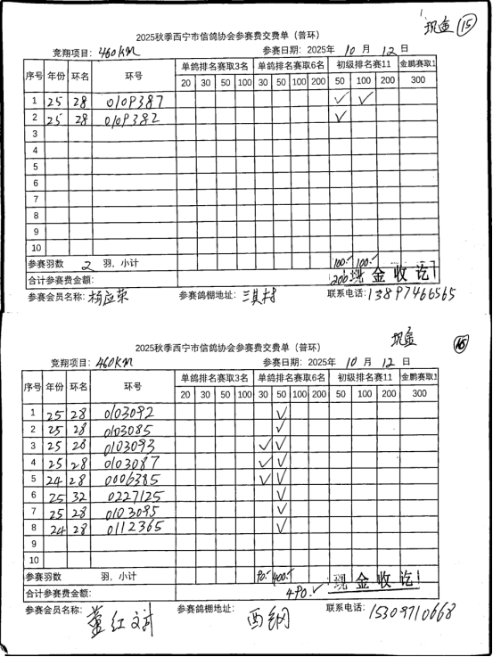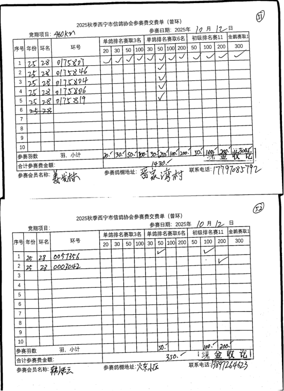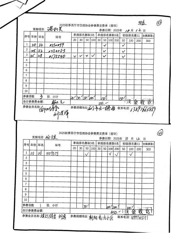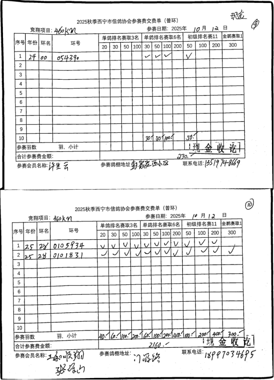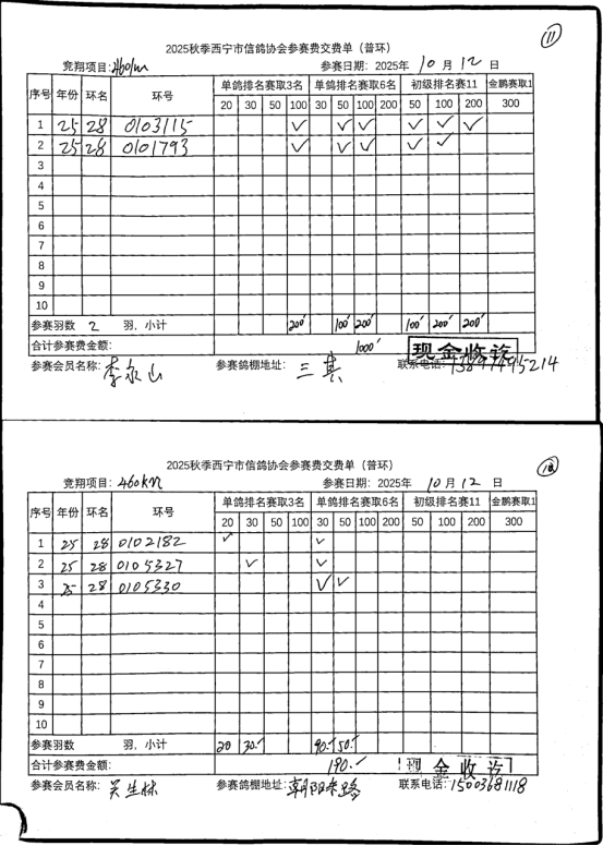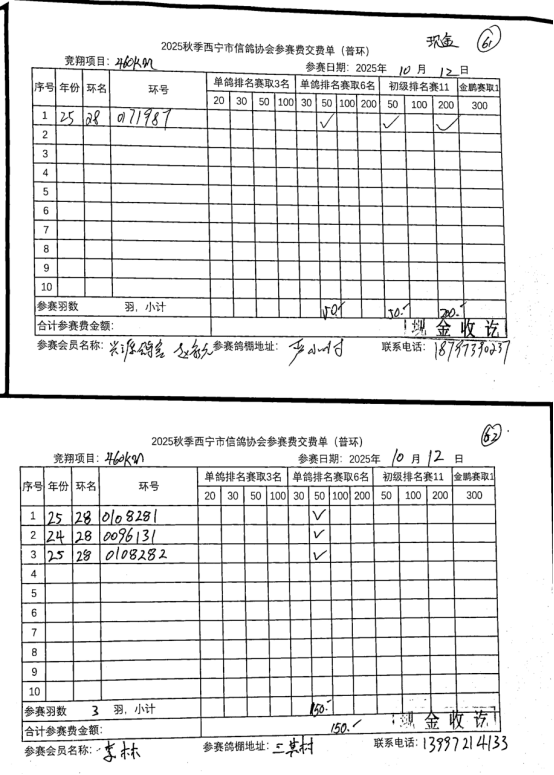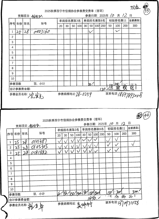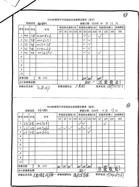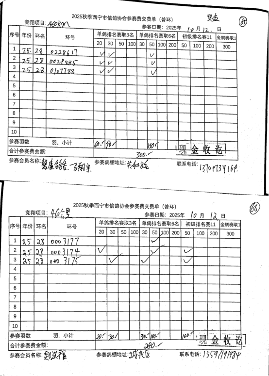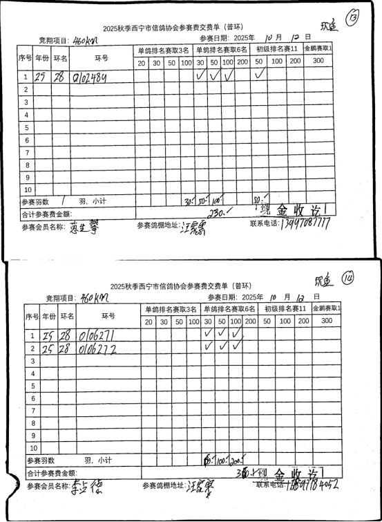 西宁市信鸽协会25年秋季安固滩站速度赛团体