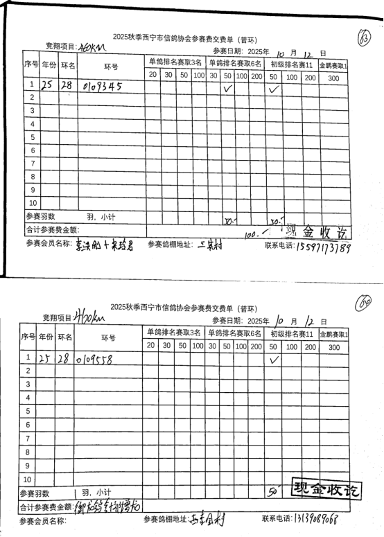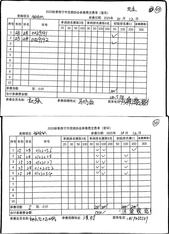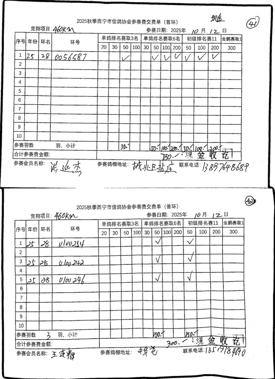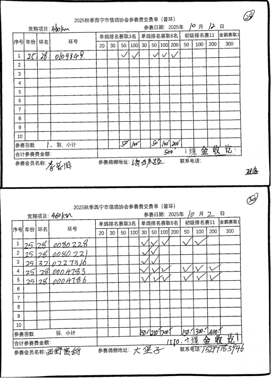 2025年秋季诺木洪站大奖赛暨特比环第一关申报四关鸽王底单