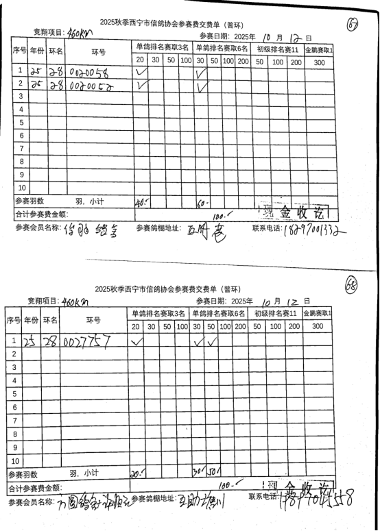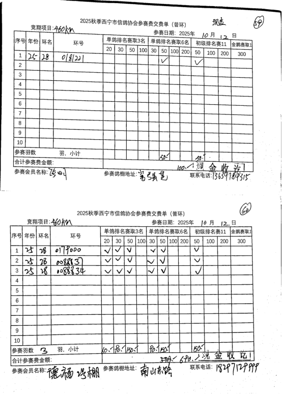 西宁市信鸽协会25年秋季安固滩站速度赛奖品