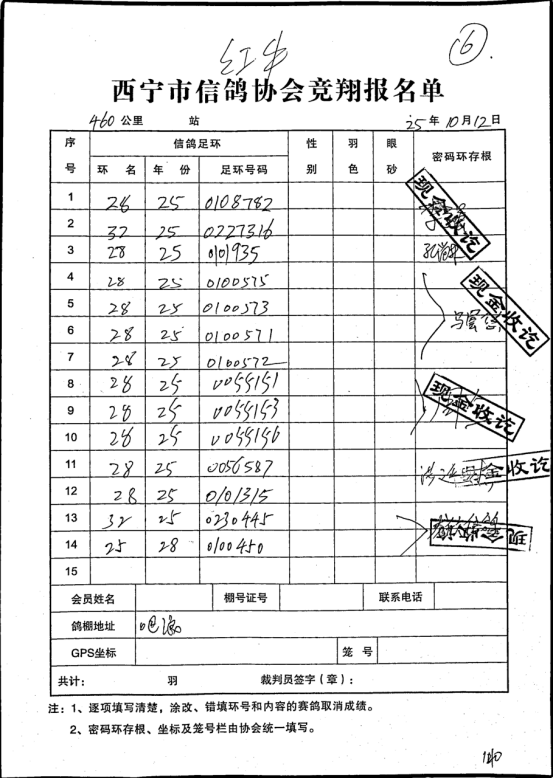 西宁市信鸽协会25年秋季安固滩站速度赛奖品