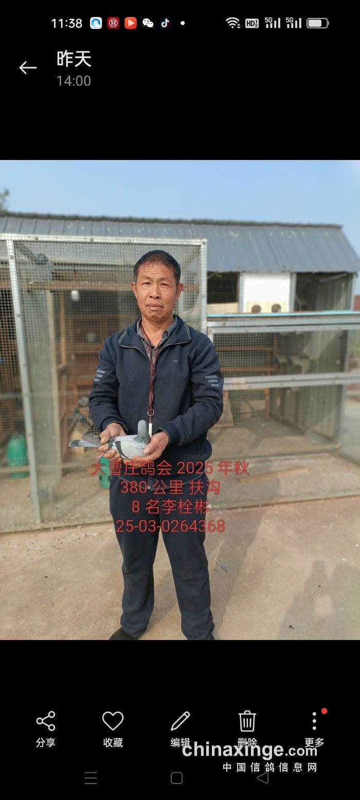 大曹庄鸽会 380 公里 扶沟前 10 名靓照