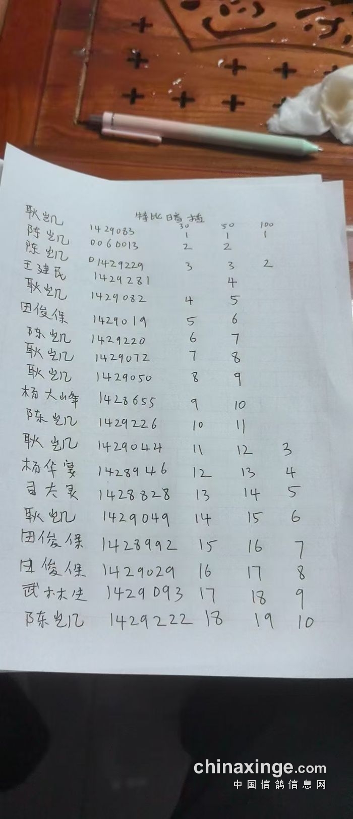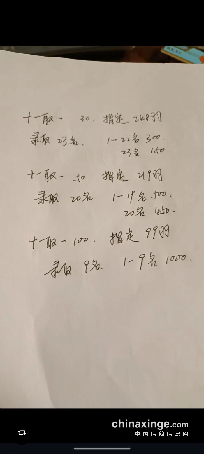 2025年灵石县信鸽协会300公里比赛成绩排名