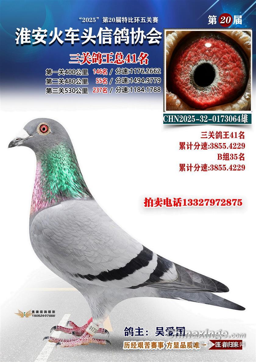 淮安火车头信鸽协会2025秋三关鸽王1-65名