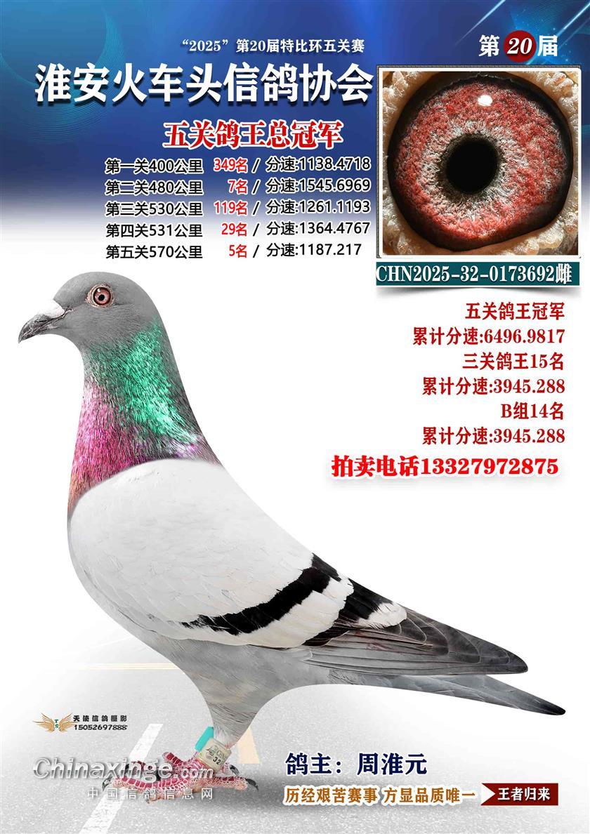 淮安火车头信鸽协会2025秋五关鸽王1-50名