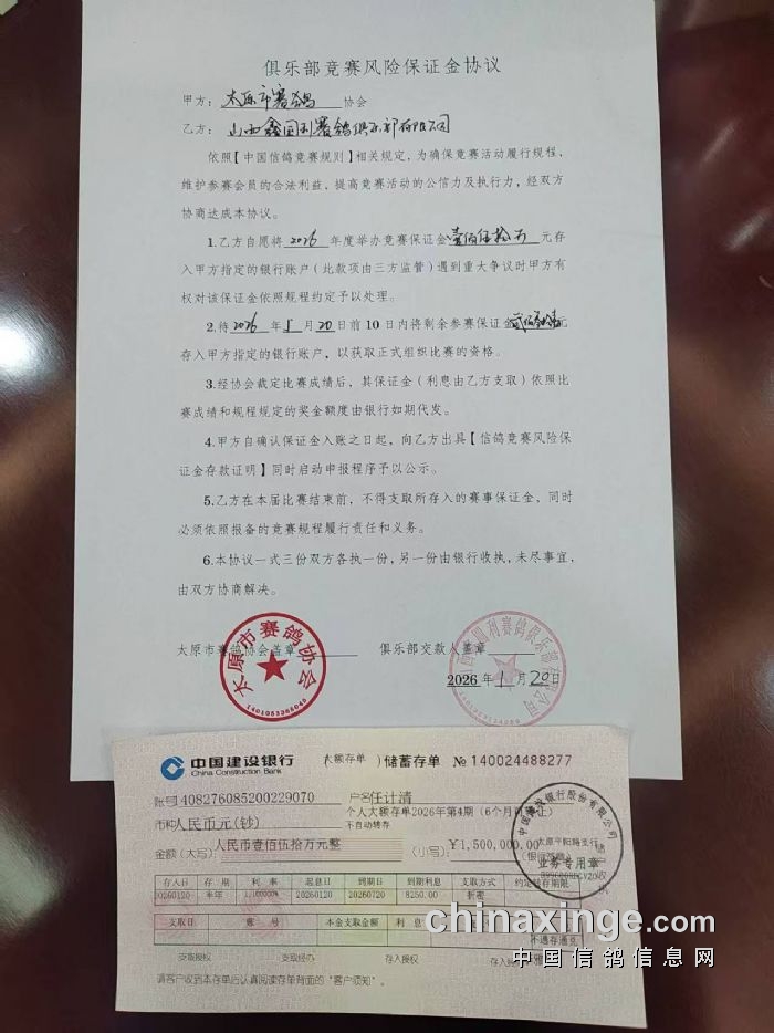 山西鑫国利赛鸽俱乐部有限公司保证金