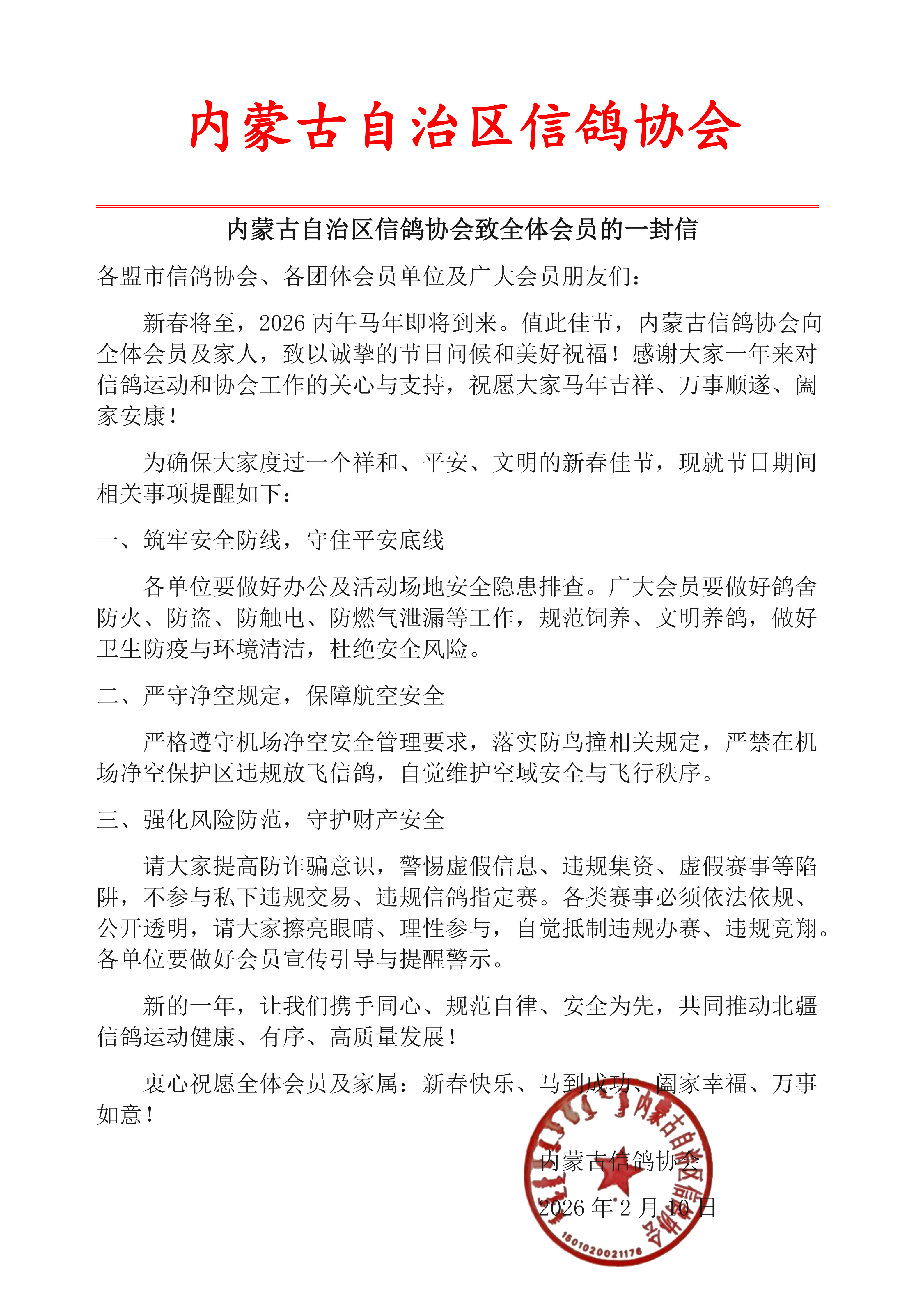 内蒙古信鸽协会关于召开2025年度年会暨颁奖会的通知