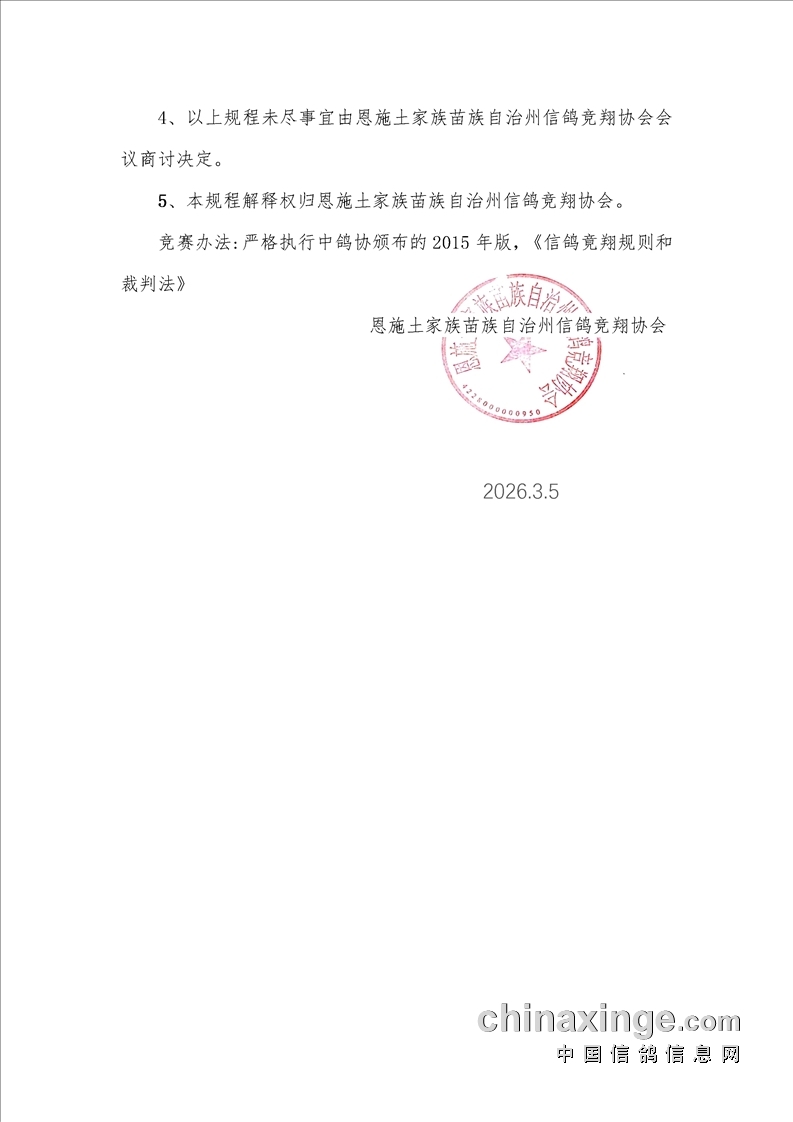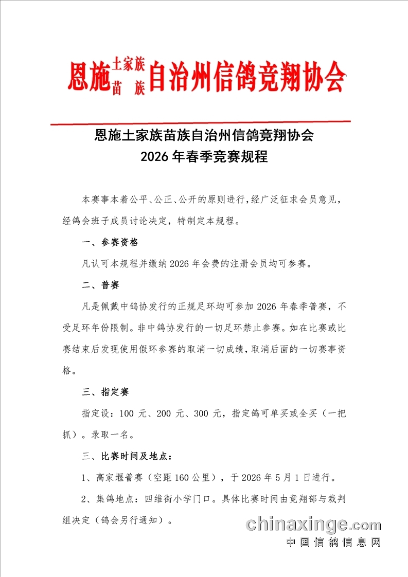 湖北恩施州信鸽竞翔协会